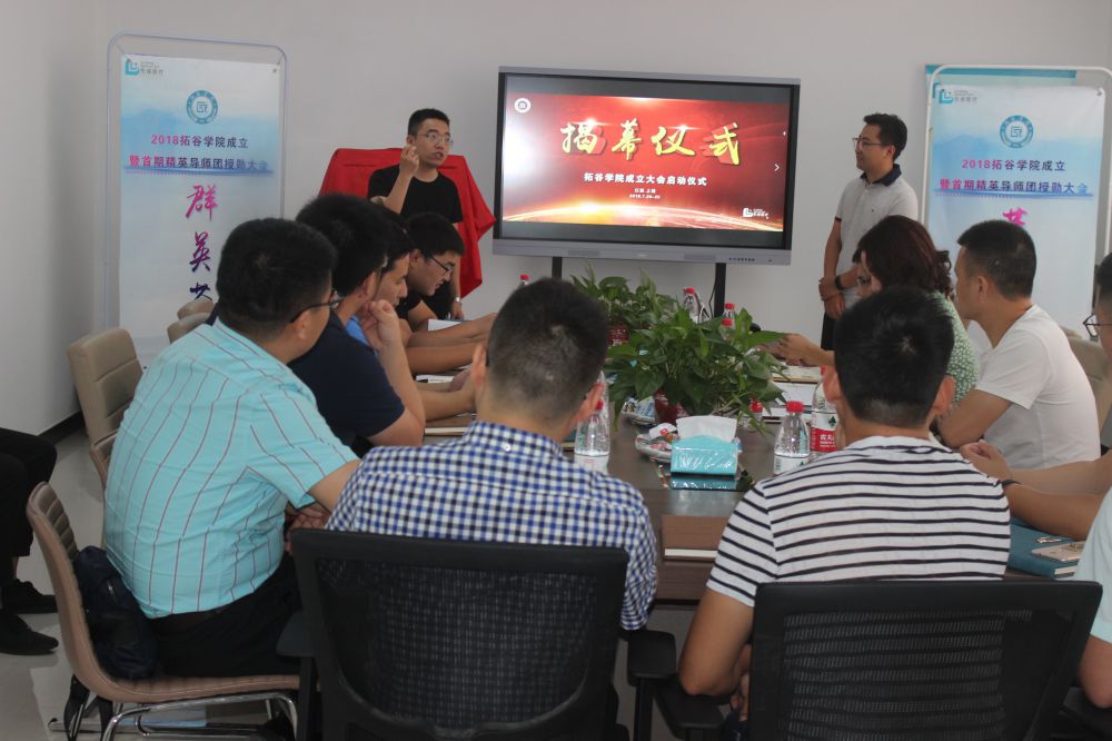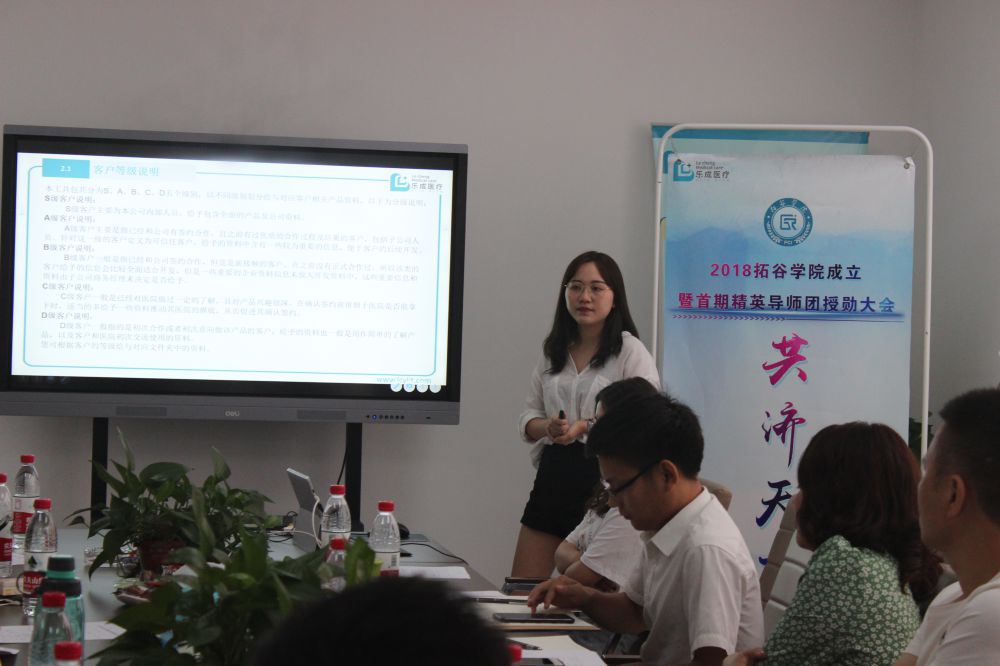 揭牌儀式上,江西樂成生物醫(yī)療有限公司總經(jīng)理黃龍致辭,拓谷學院院長、市場部總監(jiān)田偉向前來參加培訓的導師們表示歡迎,并期待導師們通過五天的系統(tǒng)培訓學有所獲,學有所成,學以致用。